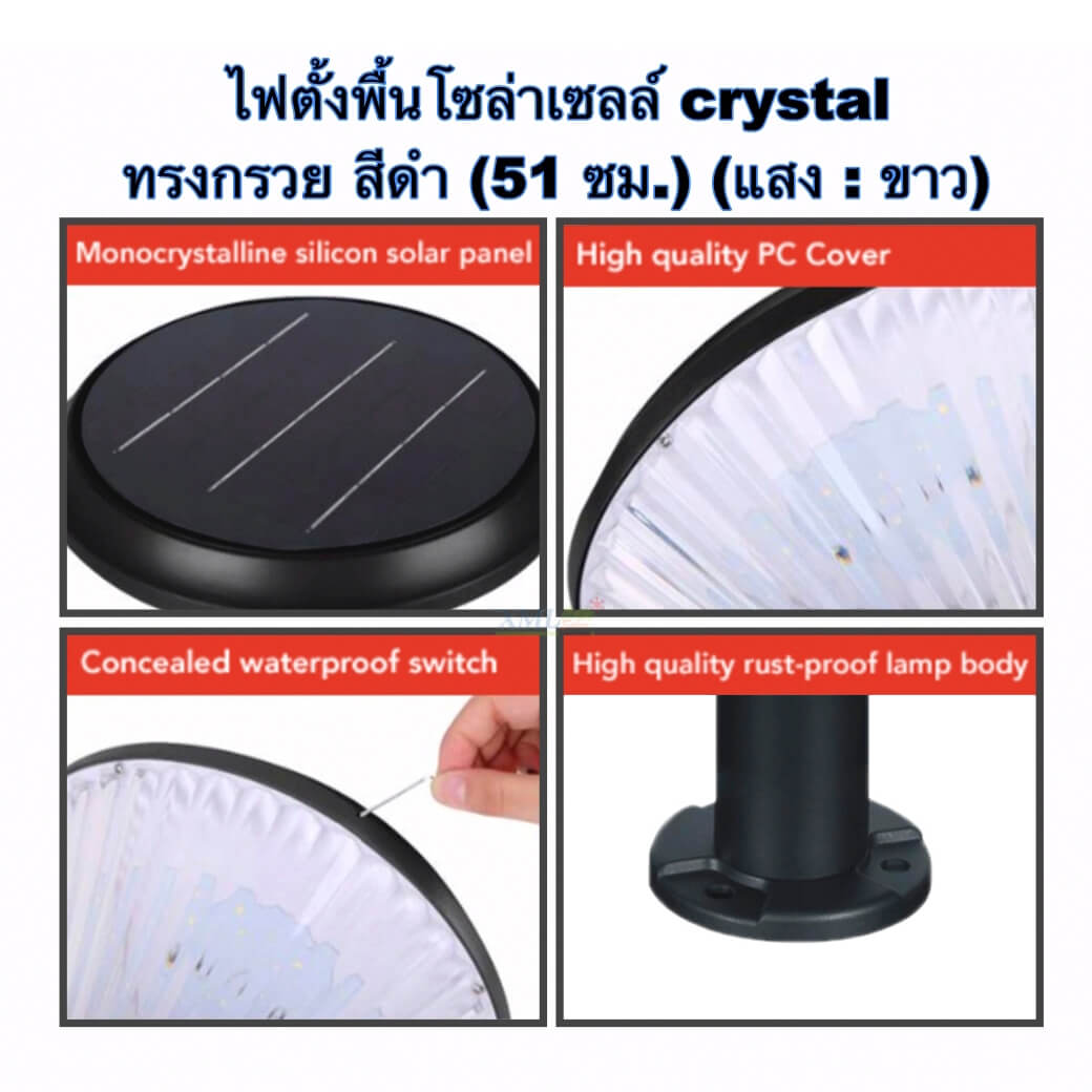 คุณสมบัติการใช้งาน : เหมาะสำหรับใช้ตกเเต่งสวนสวยเเละทางเดินในบ้านเเละ สถานที่ทั่วไป (เกสต์เฮ้าส์, รีสอร์ท ,โรงแรม, อาคารพาณิชย์ เป็นต้น) เพื่อตกเเต่งให้ดูมีชีวิตชีวามากขึ้นจากพลังงานธรรมชาติไม่สิ้นเปลืองไฟฟ้า เเละ ไม่ต้องเดินสายไฟให้ลำบาก