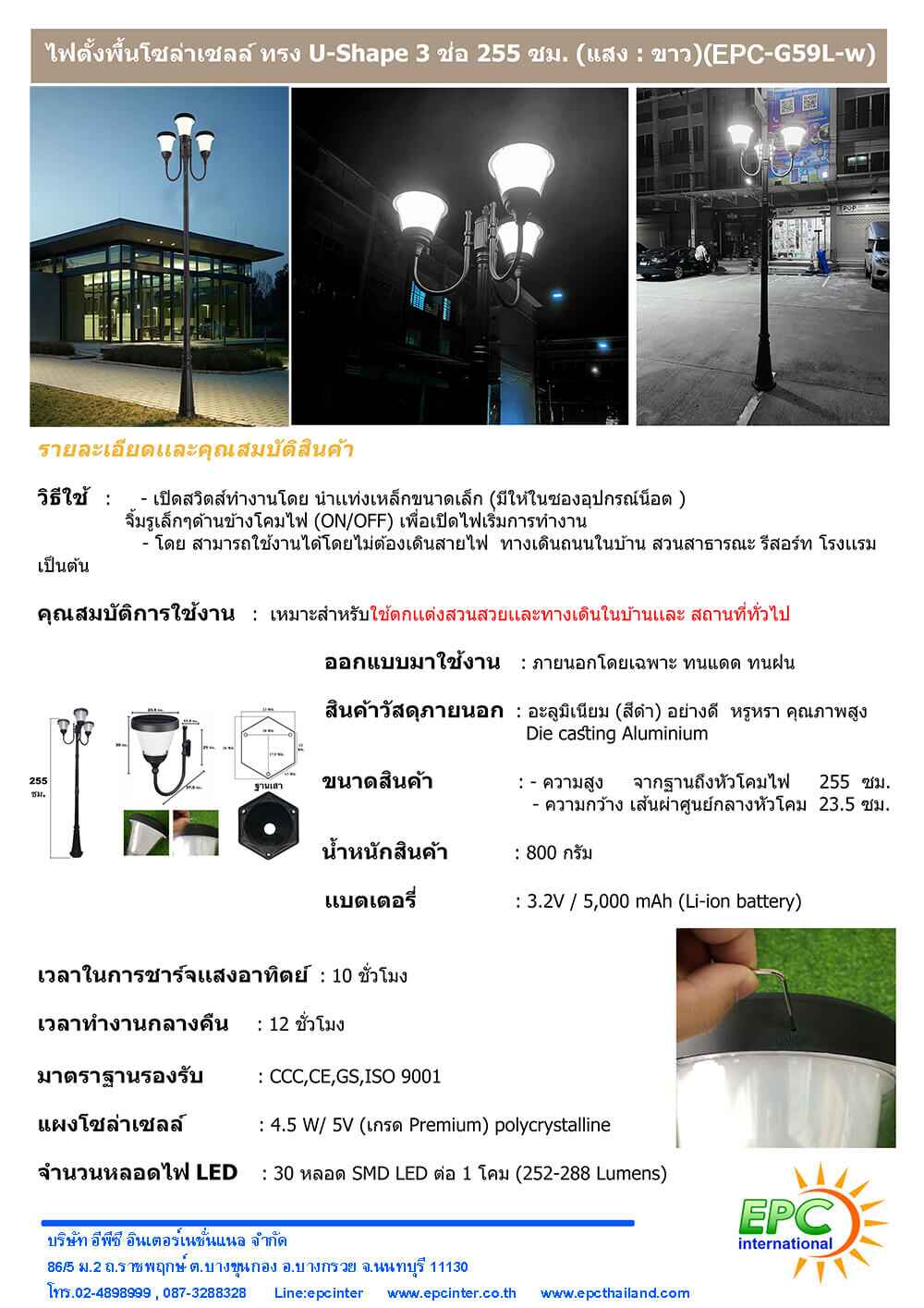 ขนาดของโคม+เสา      :   2.55 เมตร