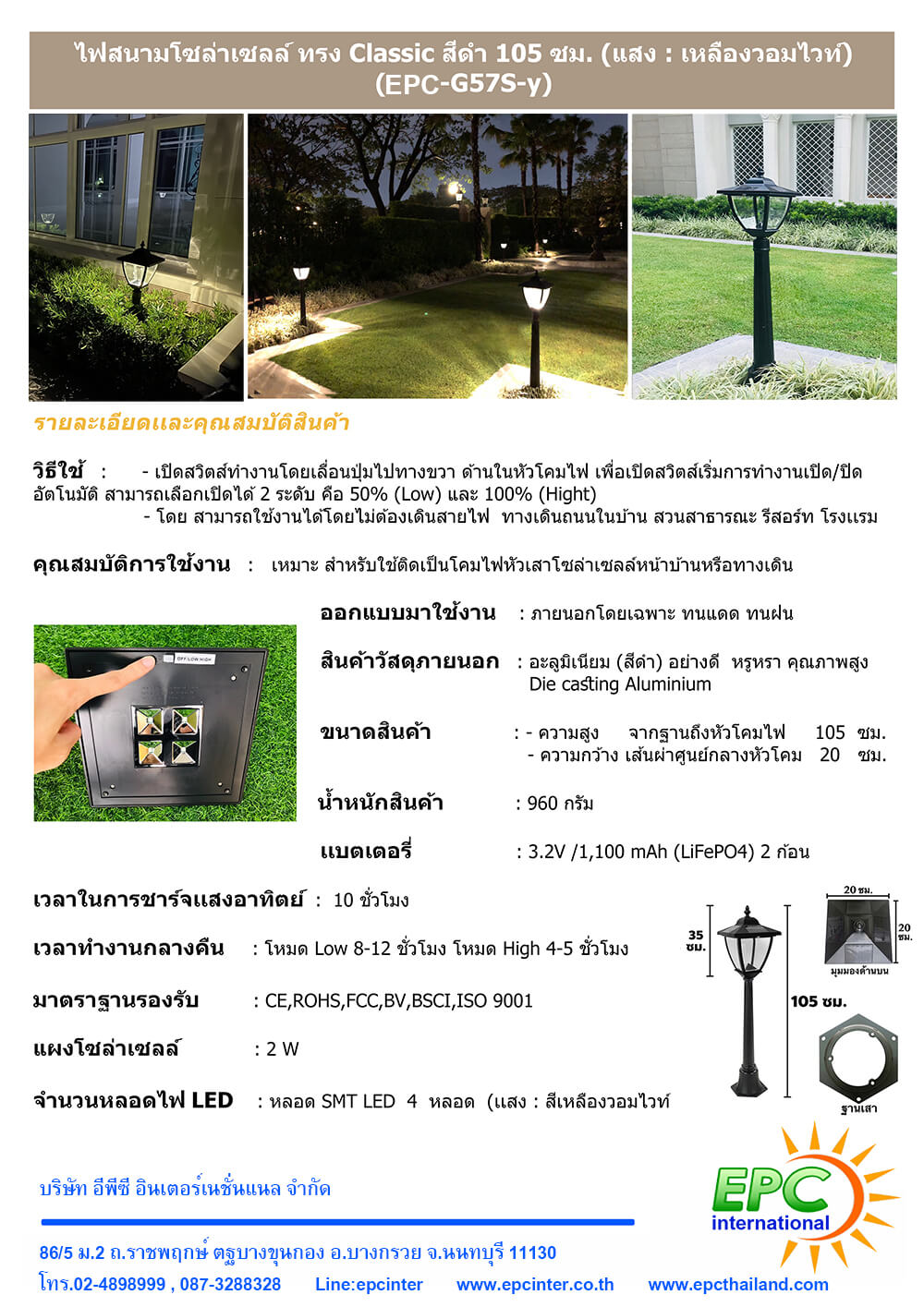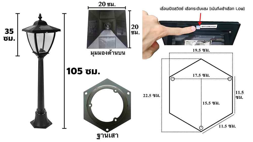 ขนาดของโคมสินค้า : - ความสูง จากฐานถึงหัวโคมไฟ 105 เซนติเมตร